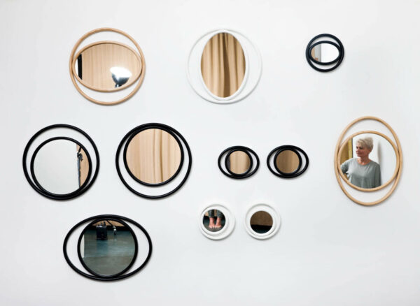 Die Eyeshine Mirrors wurden von Anki Gneis im Jahr 2015 für Gebrüder Thonet Vienna entworfen. Kombinierte, einfache, kreisförmige und ovale geometrische Formen zaubern spektakuläre Effekte, die an die mystische Kraft des Auges erinnern und die Konturen der von der Designerin Anki Gneib entworfenen Spiegel EYESHINE definieren.
