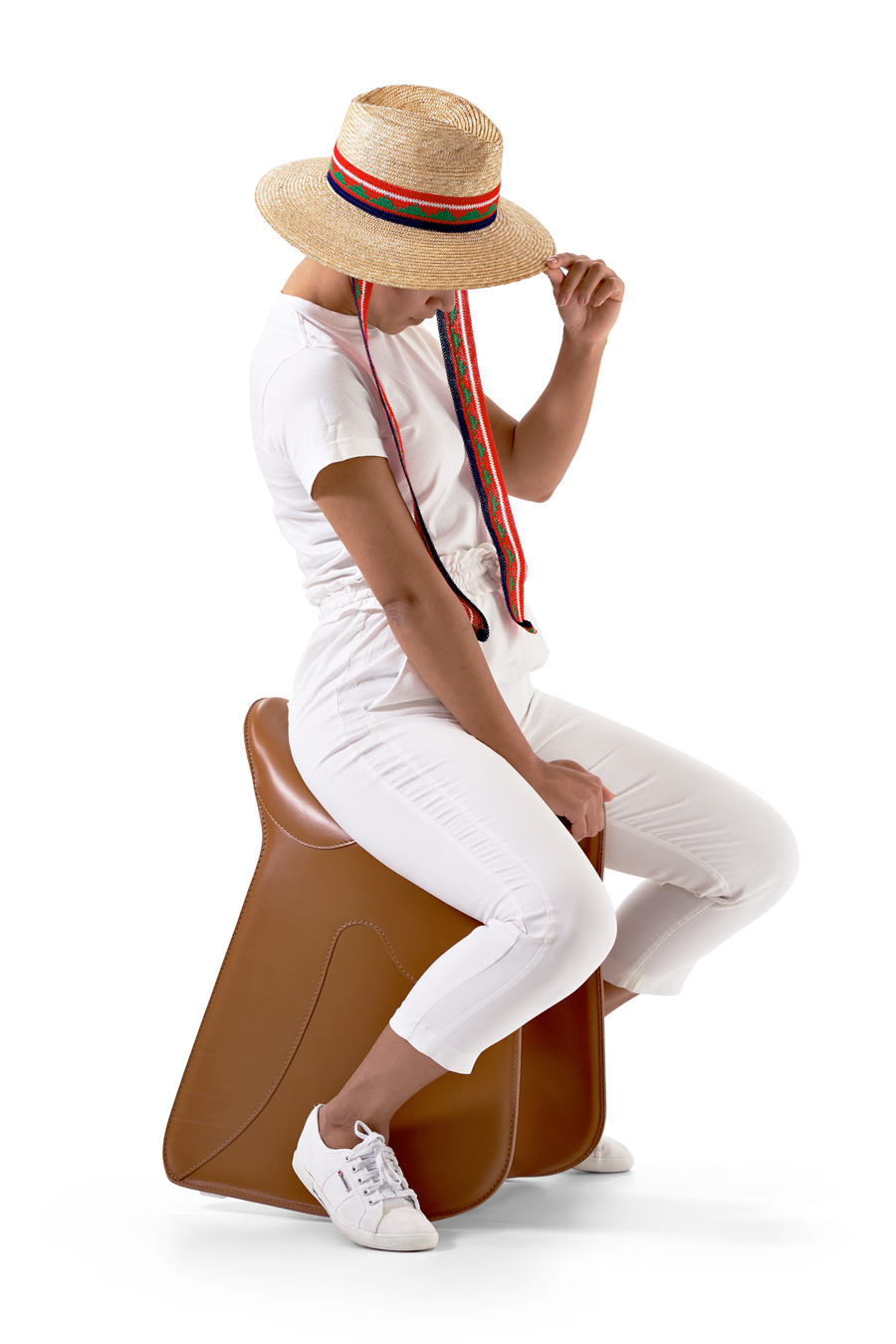 Ikonischer Sitzhocker, der sich an einem Pferdesattel inspiriert. Gestell aus Stahl mit Bezug aus natürlichem Anilinleder, handgenäht. Das Kufengestell erlaubt ein Neigen des Hockers und unterstützt die korrekte Sitzhaltung. Ausführungen: Leder naturfarben oder schwarz. Hier: naturfarben