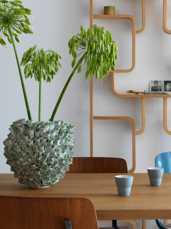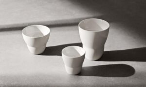 Die Vipp-Keramikserie wurde in Zusammenarbeit mit der dänischen Keramikerin Annemette Kissow entworfen und besteht aus einer großen und einer kleinen Schale, einem Milchkännchen, einem Eierring, einem Teller, einer Teetasse, einer Kaffeetasse und einer Espressotasse.