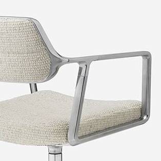 Der Swivel+ Alu-Chair ist für Heimbüros und Konferenzräume gedacht, in denen Menschen über längere Zeit sitzen und arbeiten. Die schlanken Armlehnen des ursprünglichen Swivel Aluminium Stuhls gehen direkt in die dezent gepolsterte Rückenlehne über und verleihen dem Stuhl trotz seiner soliden Komponenten einen fast luftigen Ausdruck.