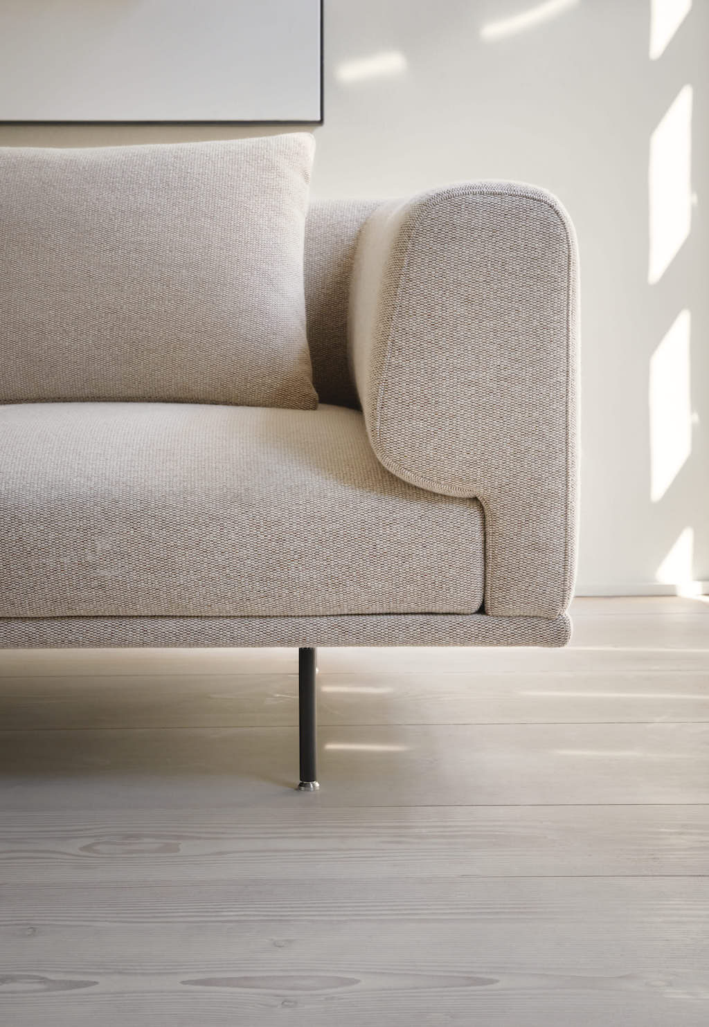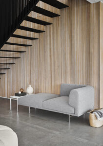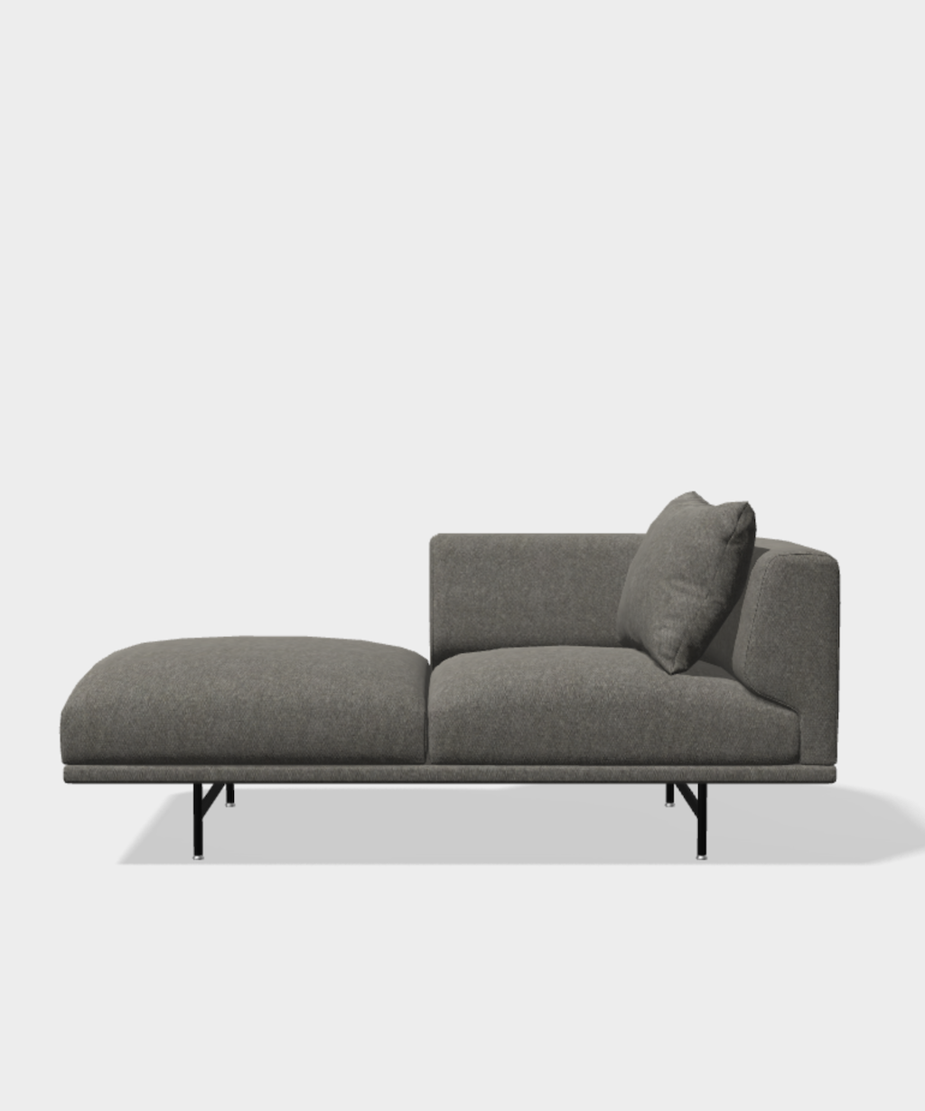 Das Vipp Chimney Sofa Open End Left zeichnet sich durch ein abgerundetes und kompaktes Design mit einer Holz-Stahl-Konstruktion aus, die von einem schlanken Rahmen aus pulverbeschichtetem Stahl getragen wird. Ein bequemes Rückenkissen ist im Lieferumfang enthalten. Diese Version ist eine Konfiguration ohne Rücken- und Armlehne auf der linken Seite (von vorn). Als Solitär oder zum Weiterbauen längs oder um die Ecke mit den anderen Moduloptionen optimal geeignet. Für weitere Moduloptionen oder einen Entwurf fragen Sie uns bitte direkt an.