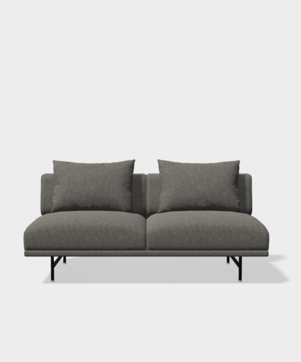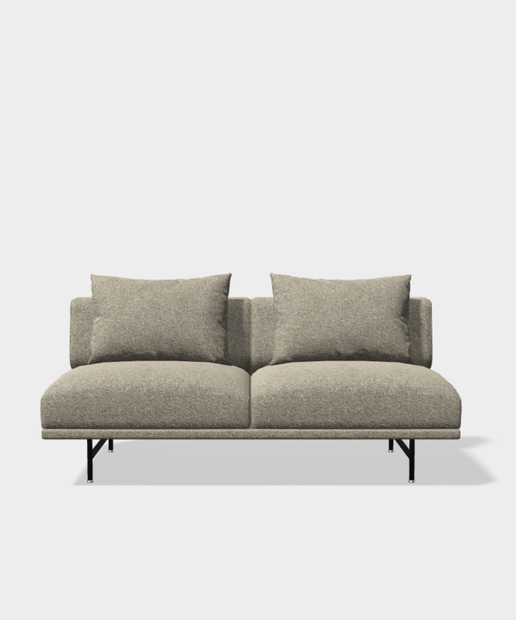 Das Vipp Chimney Sofa Open Sofa zeichnet sich durch ein abgerundetes und kompaktes Design mit einer Holz-Stahl-Konstruktion aus, die von einem schlanken Rahmen aus pulverbeschichtetem Stahl getragen wird. Bequeme Rückenkissen sind im Lieferumfang enthalten. Diese Version ist eine Konfiguration ohne Armlehnen. Als Solitär oder zum Weiterbauen längs oder um die Ecke mit den anderen Moduloptionen optimal geeignet. Für weitere Moduloptionen oder einen Entwurf fragen Sie uns bitte direkt an.