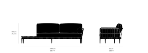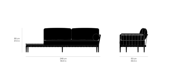 Breite 246cm, Tiefe 93cm, Höhe 80cm, Sitzhöhe 40cm