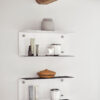 U-förmige Funktionalität: Das Vipp Regal bietet eine einfache Aufbewahrungsmöglichkeit für alle Räume des Hauses. Das U-förmige Design in Kombination mit der unsichtbar montierten Halterung verleiht dem Regal einen leichten und schwebenden Ausdruck. Die Befestigungsschrauben aus gebürstetem, rostfreiem Stahl stellen ein subtiles Detail dar.